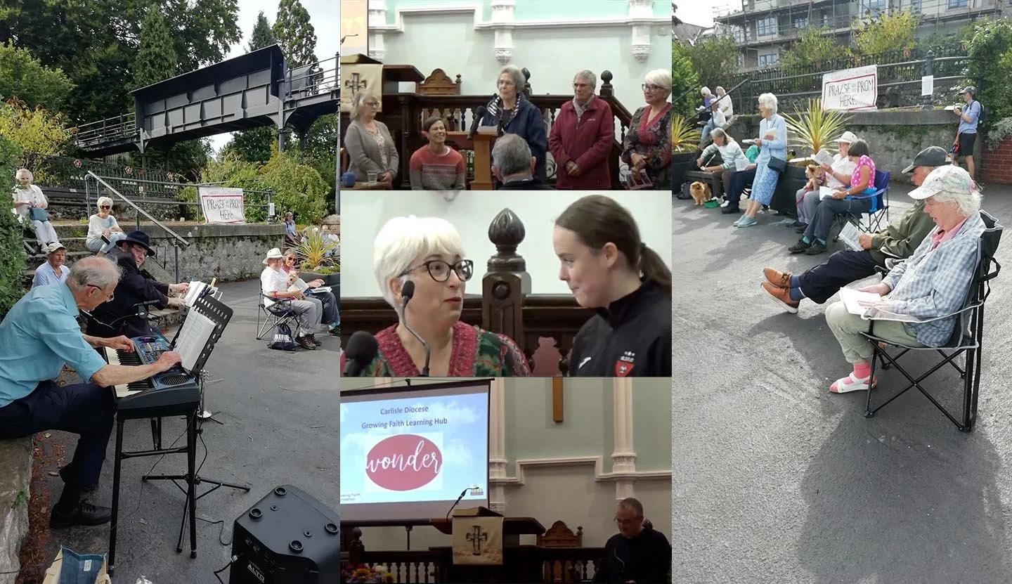 A summer highlight is Praise on the Prom – at one time 'Praise on the Rocks' held on rocks by the Lido before there was a blade of grass on the Grange-over-Sands shore. These days we meet where the bandstand once stood. About 20 of us from the local churches meet and choose our favourite songs from Mission Praise with anyone welcome to join us.